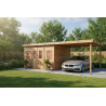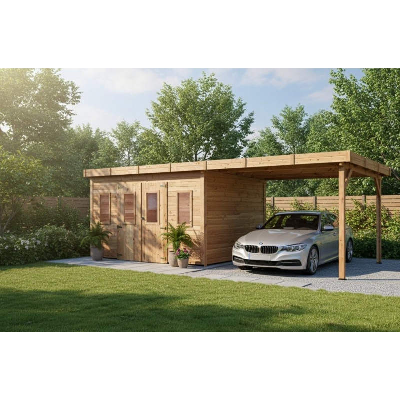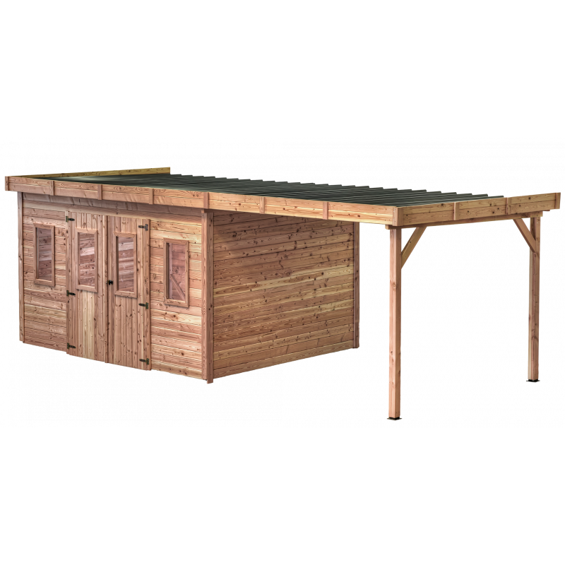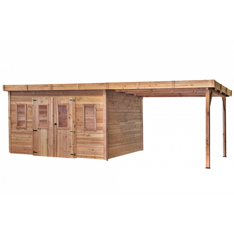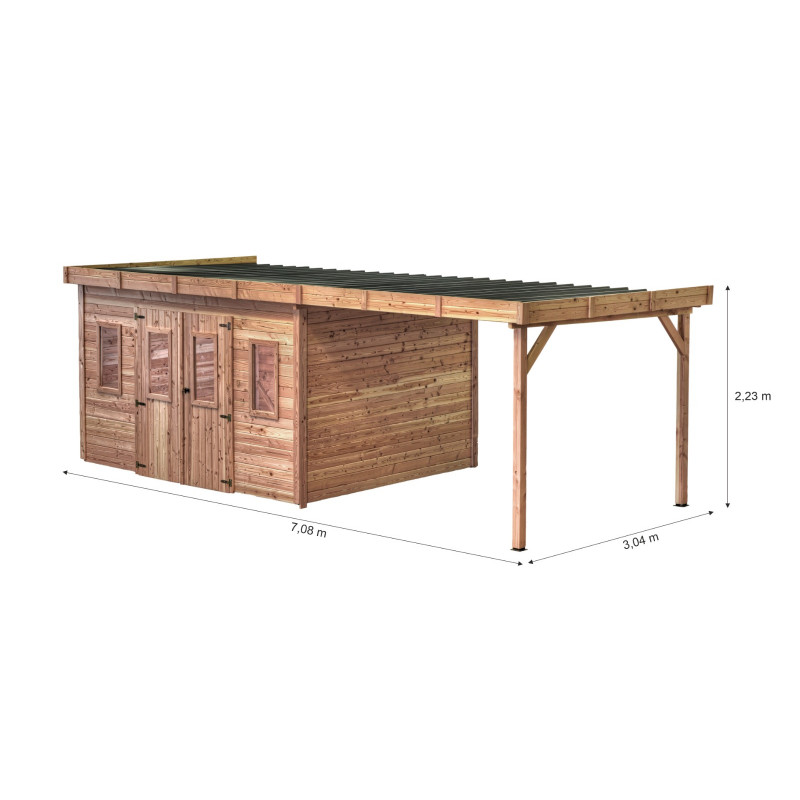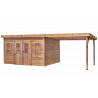 Casetta da giardino in legno 280x680 cm con legnaia – Spessore pareti 28 mm – Tetto piano in acciaio – DIN4030.02B Foresta