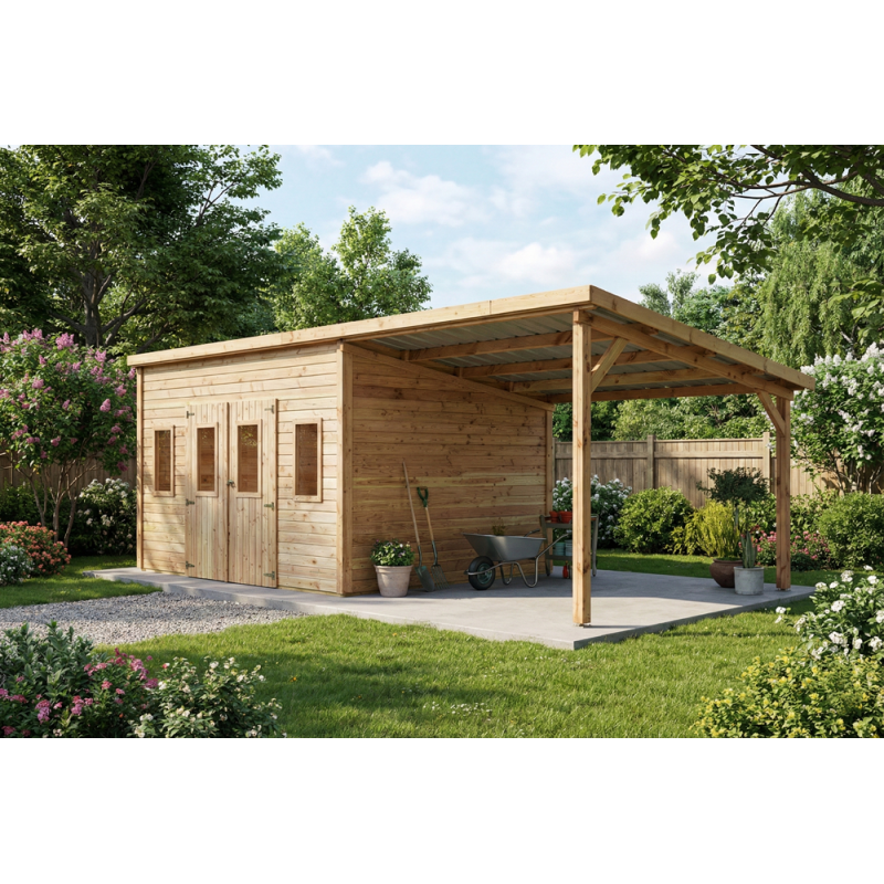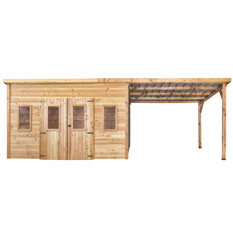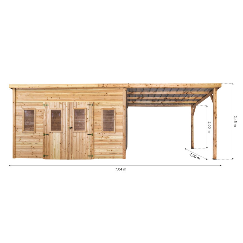 Casetta da giardino in legno 380x680 cm con legnaia – Spessore pareti 28 mm – Tetto acciaio piano – DAN4040.02B Foresta