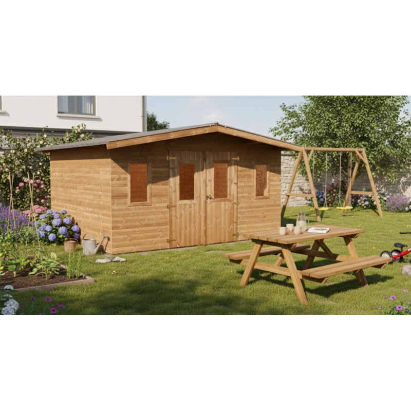 Casetta da giardino in legno 400x400 cm – Spessore pareti 28 mm – Legno Douglas e tetto acciaio – DUB4040 Foresta