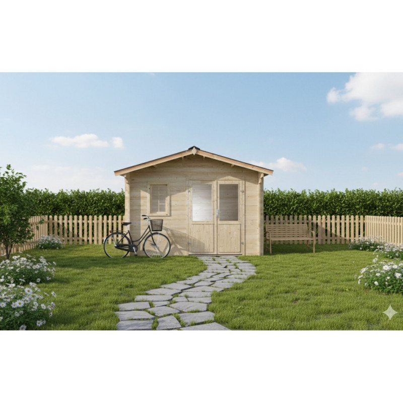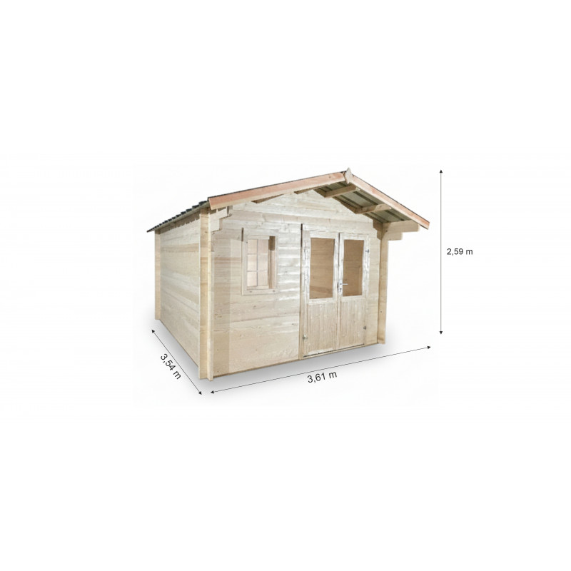 Casetta da giardino in legno abete 350x300 cm – Spessore pareti 42 mm – Tetto in acciaio zincato – Porta vetrata – NAX3530 Foresta