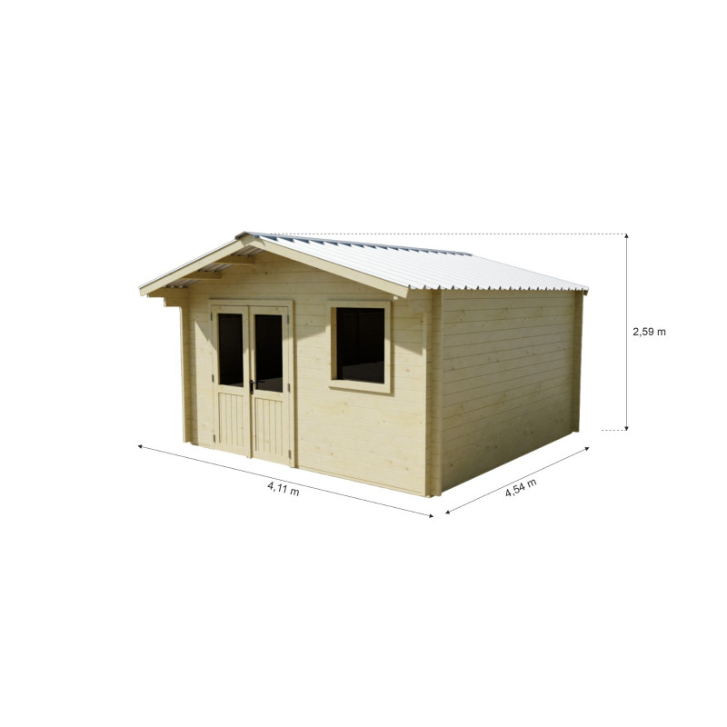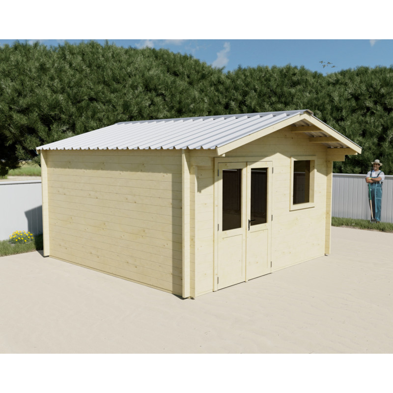 Casetta da giardino in legno abete 400x400 cm – Spessore pareti 42 mm – Tetto acciaio zincato – Porta vetrata – NAX4040 Foresta