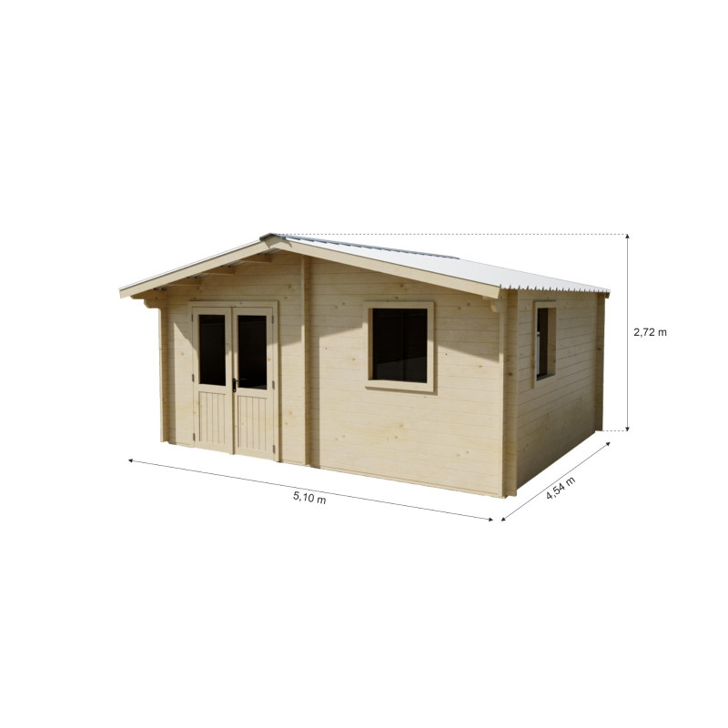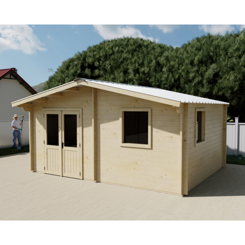 Casetta da giardino in legno abete 500x400 cm – Spessore pareti 42 mm – Tetto in acciaio zincato – 2 finestre con vetri – NAX5040 Foresta