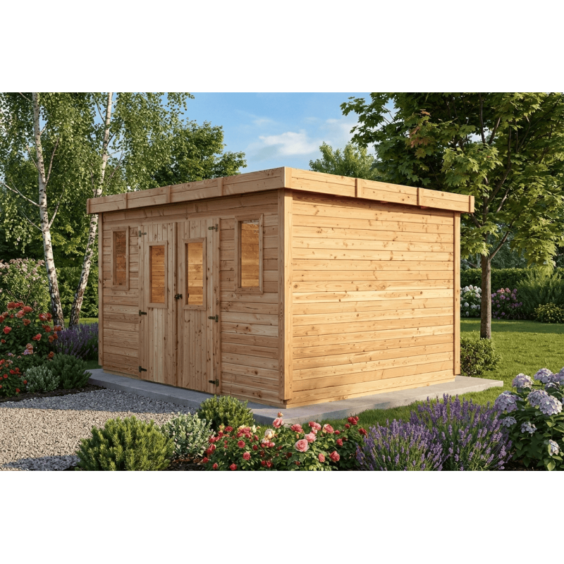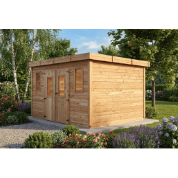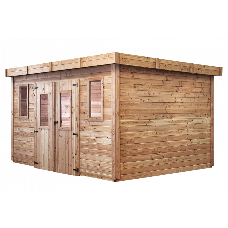 Casetta da giardino in legno massello 380x280 cm – Spessore pareti 28 mm – Tetto piano in policarbonato – 10,64 m² – SL4030 Foresta