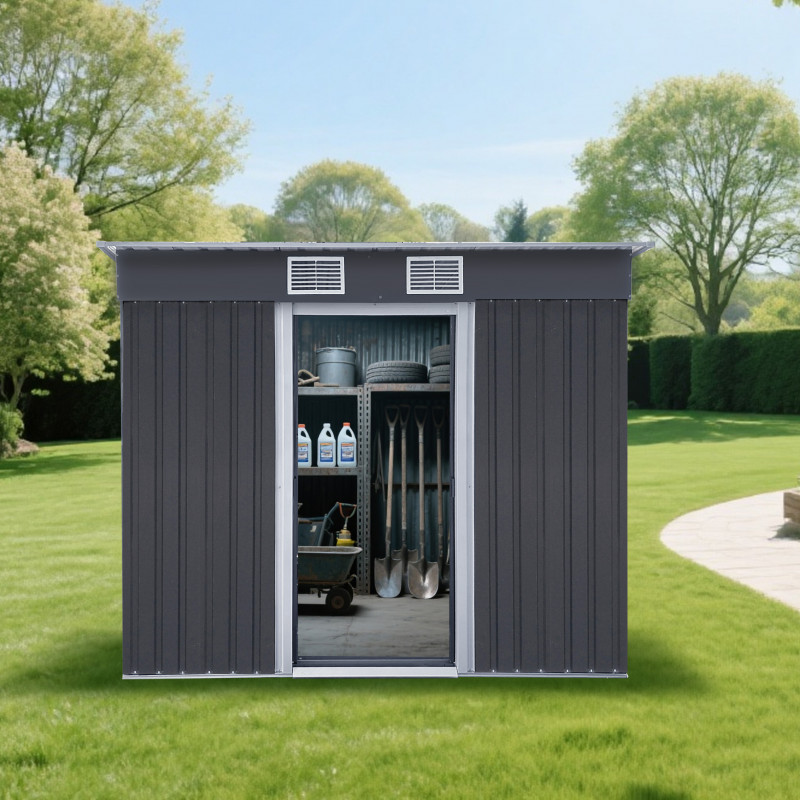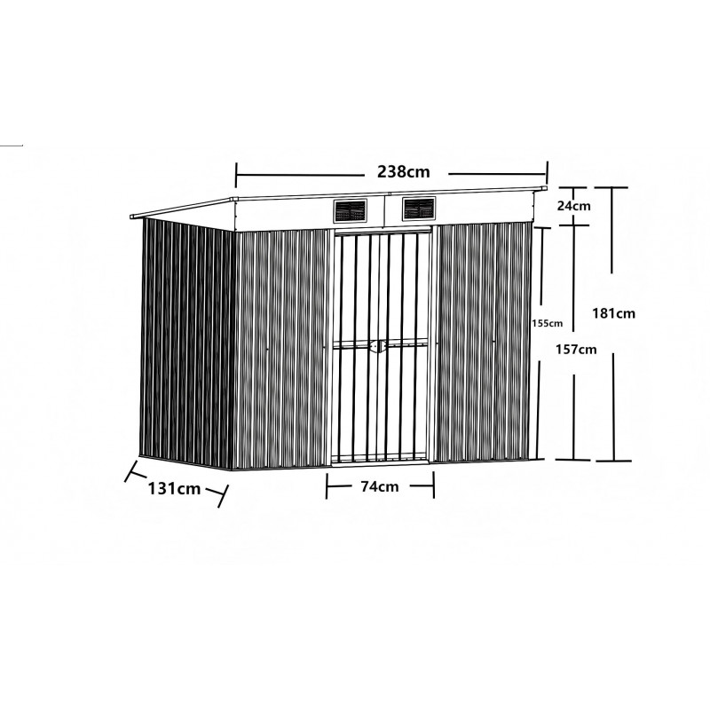 Casetta da giardino in metallo 238x131 cm – Capanno con superficie 3,12 m² – Tetto monofalda – Doppia porta 74 cm – AM2413.1 Foresta