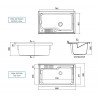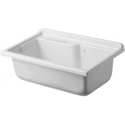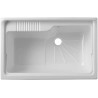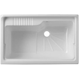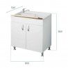 Meuble en mélaminé blanc hydrofuge W100, épaisseur 18 mm Portes à coins carrés Poignées chromées Baignoire en résine plastique résistante aux acides Planche à laver en polypropylène Siphon autonettoyant complet avec vidange et trop-plein Pieds réglables en hauteur de 15 mm Réservoir forable pour l'installation du robinet Évacuation du siphon à 35-45 cm du...