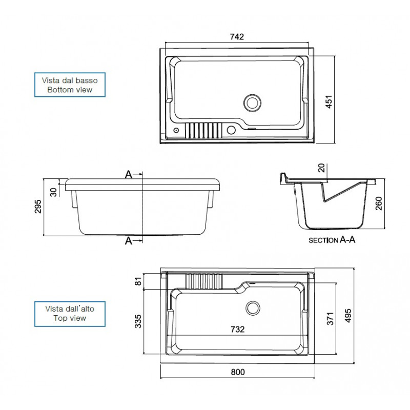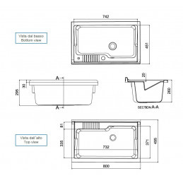 ECO sink in water-repellent melamine with a thickness of 18 mm and tub in PP 45x50 cm resistant to all acids for domestic use.