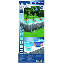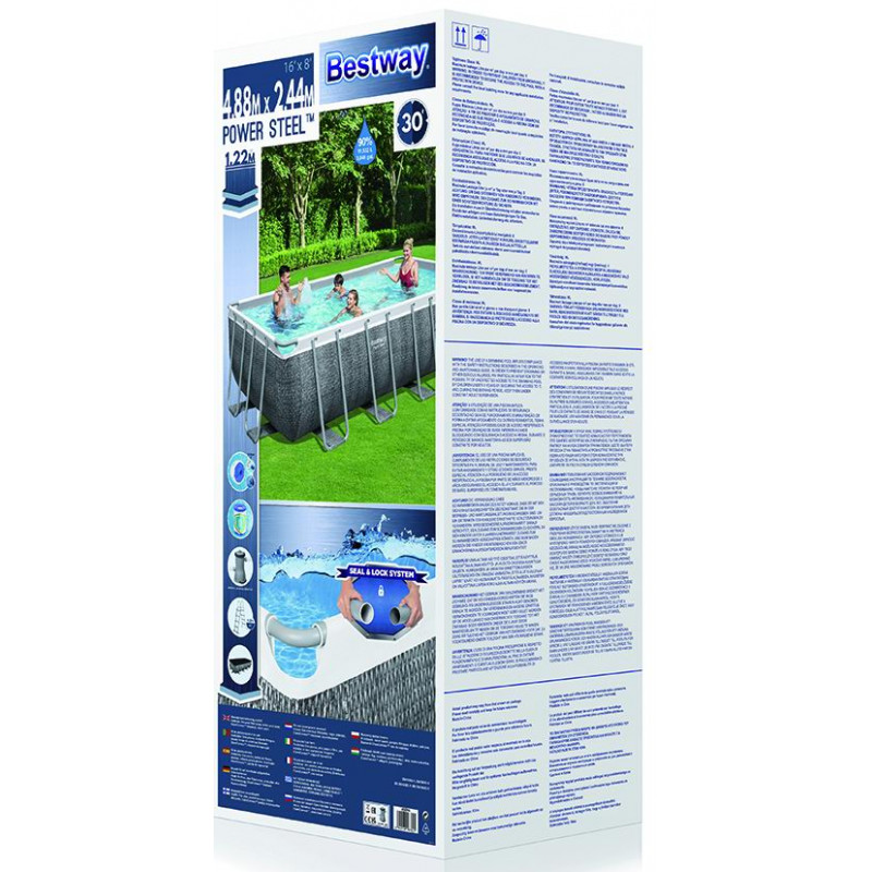 Piscina fuori terra rettangolare Bestway Power Steel effetto rattan 488x244x122 cm con filtro, scaletta e copertura