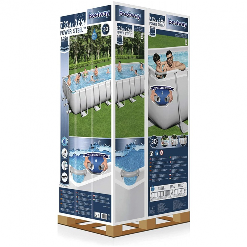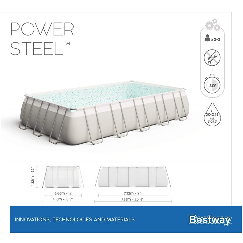 Piscina fuori terra rettangolare con filtro a sabbia e ChemConnect, 732x366x132 cm con scaletta e telo copertura - Bestway