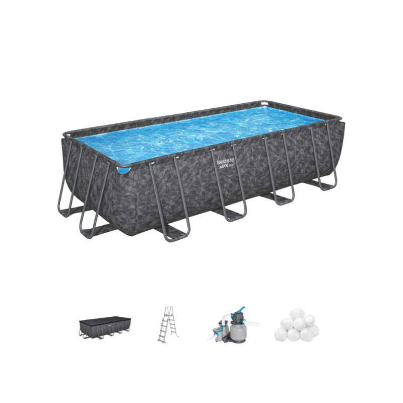 Piscina fuori terra rettangolare con filtro a sabbia Polysphere e scaletta, 579x274x132 cm telo copertura incluso - Bestway