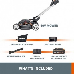 Tipologia: Rasaerba a batteriaAlimentazione: 2 x 20 Volt (potenza totale 40 Volt)Capacità batterie incluse: 2 x 2,5 Ampere ora al litio con indicatore di caricaSuperficie consigliata: Fino a 280 metri quadratiLarghezza di taglio: 34 centimetriAltezza di taglio: Regolabile con leva centralizzata in 6 posizioni da 20 a 70 millimetriSistema di taglio: Taglio...