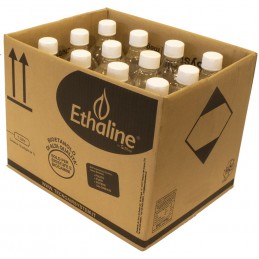 Bioetanolo liquido confezione 12 flaconi da 1,0 litro modello Ethaline, con etanolo in concentrazione superiore al 96 %.