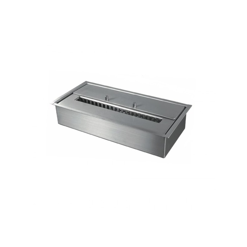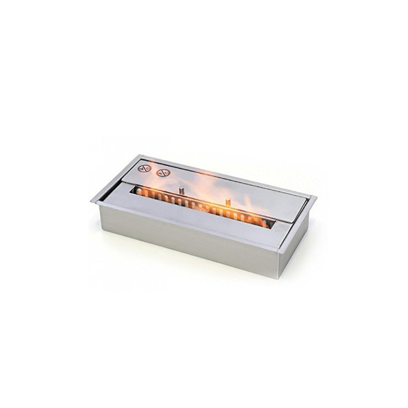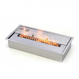 Capienza serbatoio: 1 litroDotazione: fibra interna assorbenteSistema sicurezza: serbatoio troppo pieno, spegnifiamma regolabileUtilizzo: inserto per camini a bioetanoloMateriale: metallo verniciato Installazione: incasso / inserto. Dimensioni (L x P x H): 28,3 x 10,3 x 6,6 cm.