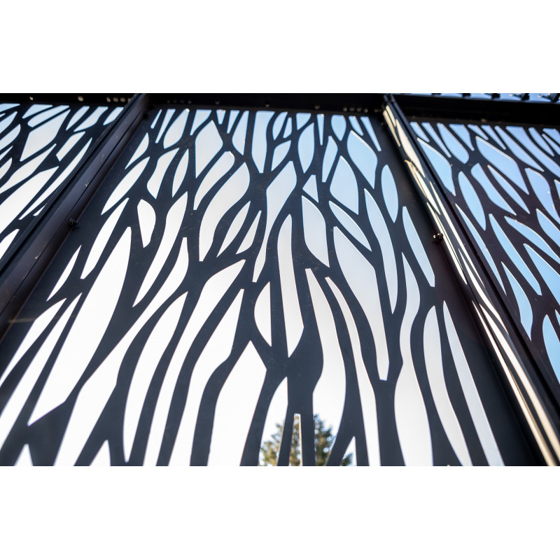 Compatibilità: pergole PER 3630 BI e PER 3660 BI (lato 3,60 m)Materiale: acciaio epossidico verniciato a polvereColore: grigio antracite perlatoNumero pannelli: 5Design: traforato moucharabieh con motivi vegetaliDimensioni singolo pannello: 64,5 x 213,3 x 2,5 cmSpessore acciaio: 1 mmPali di connessione: 4 pali inclusiMontaggio: fissaggio a terraImballo:...