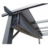 Materiale struttura: alluminio termolaccatoColore struttura: grigio antraciteMateriale lamelle: alluminioColore lamelle: ecrùNumero lamelle: 156 (4 sezioni)Spessore lamelle: 1 mmPali: 6 pali 100 x 100 mm, spessore 1,2 mmOrientamento lamelle: apertura manuale, rotazione fino a 90°Grondaie: laterali integrate 28,8 mmDimensioni: 598 x 360 x 235 cmAltezza...