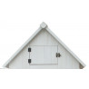 Porta con chiusura in legno e tetto a due falde rivestito in carta catramata per protezione dalle intemperie.