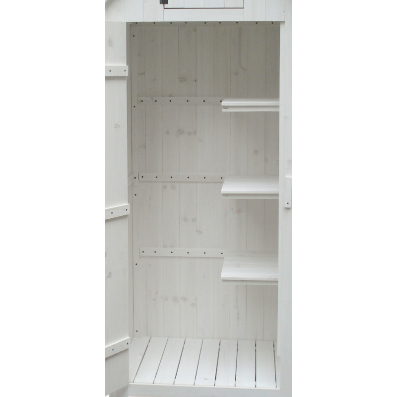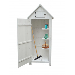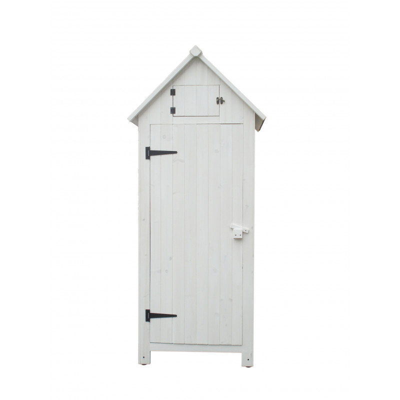 Armadio compatto da esterno in legno, perfetto come porta attrezzi per balcone, terrazza o giardino.