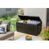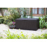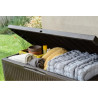 Baule in Resina con Finitura Effetto Rattan, Coperchio con Portata 250Kg, Comprensivo di Ruote, Lucchettabile Cm. 123X53,5X57H - 305 Lt Colore Marrone