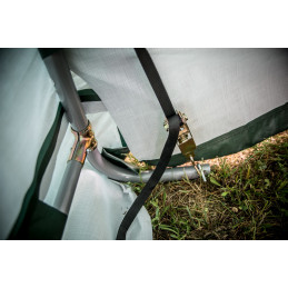 Materiale telo: polietilene rinforzato 195 g/m²Struttura: tubolare in acciaio verniciato, diametro 34 mm, spessore 0,7 mmColore telo: esterno verde scuro, interno biancoDimensioni esterne: L 183 x P 183 x H 183 cmSuperficie utile: 3,35 m²Volume utile: 6,10 m³Altezza pareti: 1,40 mAltezza colmo: 1,83 mTipo di porta: con zip, larghezza 1,30 m, altezza 1,38...