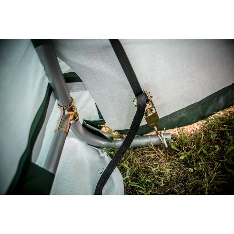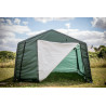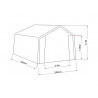 Materiale telo: polietilene rinforzato 195 g/m²Struttura: acciaio verniciato Ø 34 mm, spessore 0,7 mmColore telo: esterno verde scuro, interno biancoDimensioni esterne: L 305 x P 305 x H 244 cmSuperficie utile: 9,30 m²Volume utile: 22,70 m³Altezza pareti: 1,93 mAltezza colmo: 2,44 mPorta: con zip, L 2,30 x H 1,90 mMontaggio: a clips con tenditori a...