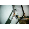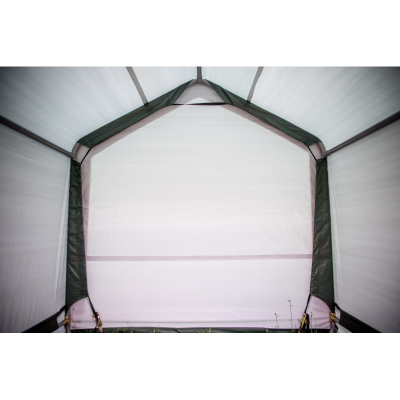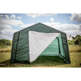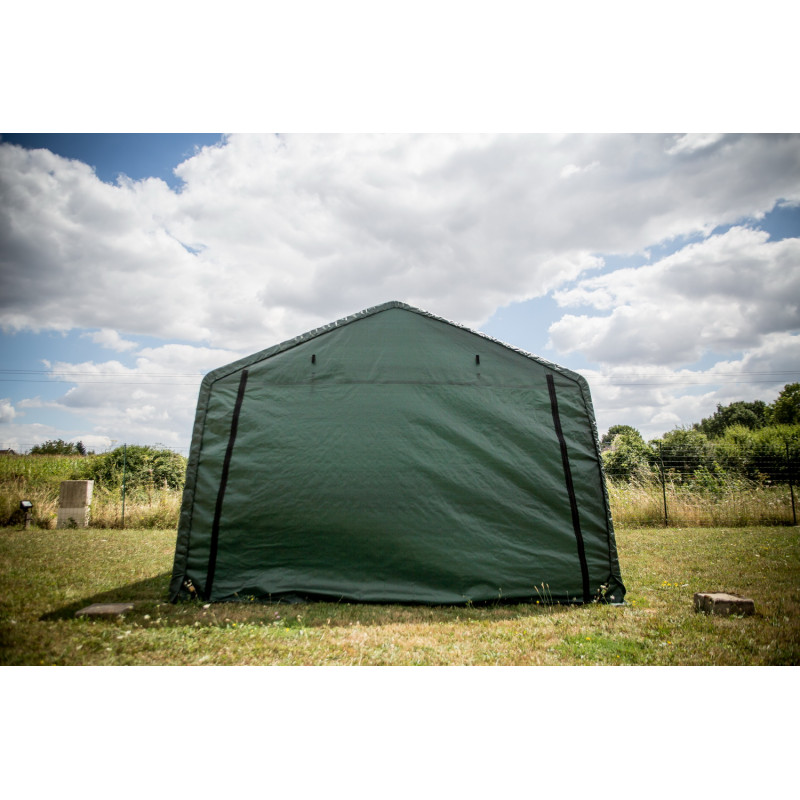Materiale struttura: tubi in acciaio Ø 34 mm, spessore 0,7 mm, verniciatiMateriale telo: polietilene rinforzato 195 g/m², impermeabile e anti-UVColore telo: verde esterno, bianco internoDimensioni esterne: L 305 x P 610 x H 244 cmSuperficie utile: 18,60 m²Volume utile: 45,40 m³Altezza pareti: 1,95 mAltezza colmo: 2,44 mPorta: con zip, dimensioni 230 x 190...