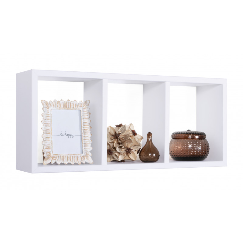Tipologia: libreria/mensola a giorno da parete Dimensioni: L 70 × H 30 × P 15,5 cm Materiale: fibra di legno rivestita Finitura/colore: Grigio Sasso Spessore pannelli: 18 mm Struttura interna: 3 vani con divisori verticali Fissaggio: a scomparsa (richiede 2 tasselli, non inclusi) Portata massima: 10 kg Utilizzo: soggiorno, cucina, camera, bagno, studio...