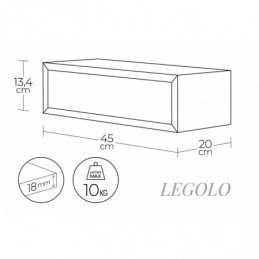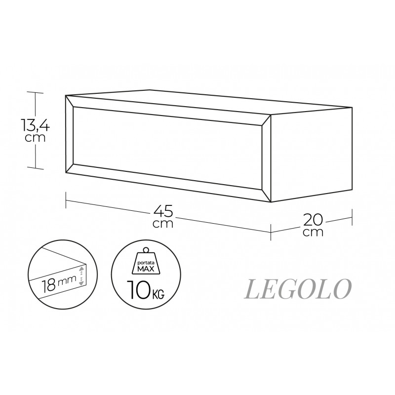 Tipologia: libreria/mensola a giorno da parete Dimensioni: L 70 × H 30 × P 15,5 cm Materiale: fibra di legno rivestita Finitura/colore: Nero Spessore pannelli: 18 mm Struttura interna: 3 vani con divisori verticali Fissaggio: a scomparsa (richiede 2 tasselli, non inclusi) Portata massima: 10 kg Utilizzo: soggiorno, cucina, camera, bagno, studio Marca:...
