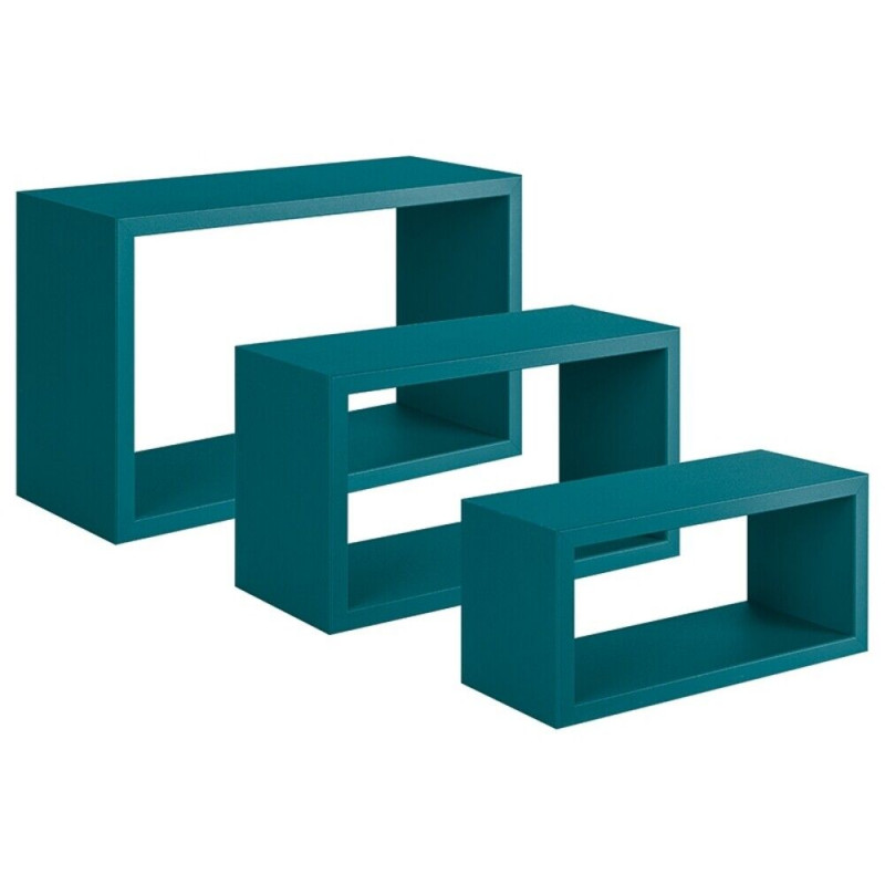 Set di 3 Mensole da Muro, Libreria Sospesa, Libreria Parete, Scaffale Parete, Blu Atollo, 45x27 p15,5 cm, 40x22 p15,5 cm e 35x17 p15,5 cm - Trittico