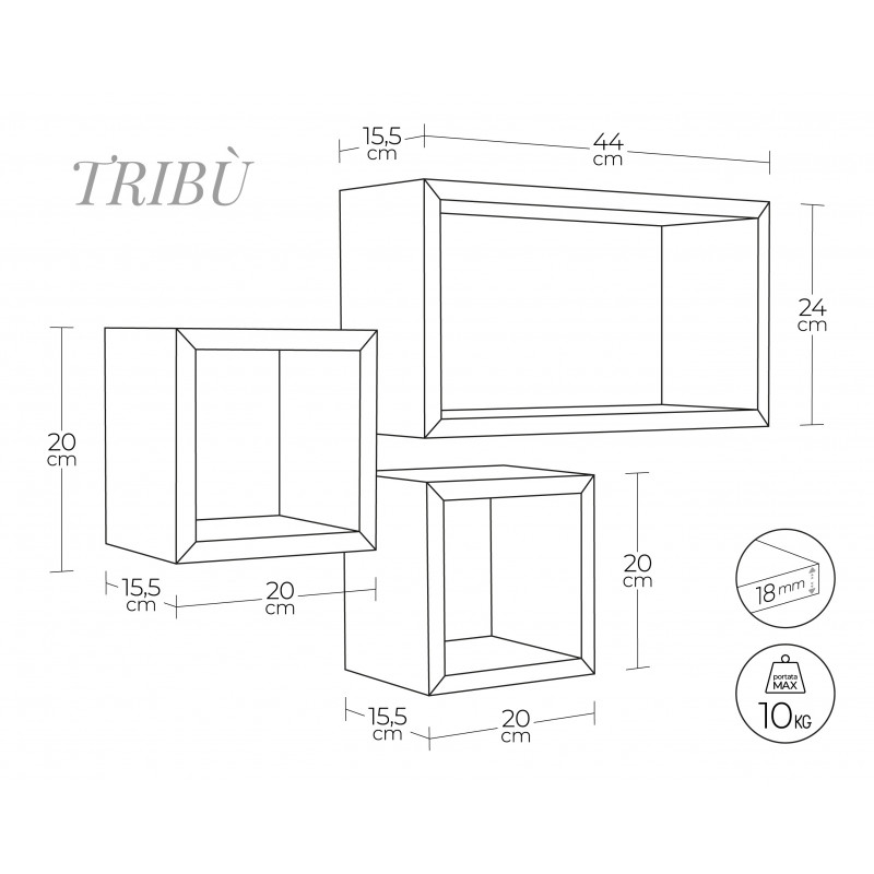 Tipologia: libreria/mensola a giorno da parete Dimensioni: L 70 × H 30 × P 15,5 cm Materiale: fibra di legno rivestita Finitura/colore: Nero Spessore pannelli: 18 mm Struttura interna: 3 vani con divisori verticali Fissaggio: a scomparsa (richiede 2 tasselli, non inclusi) Portata massima: 10 kg Utilizzo: soggiorno, cucina, camera, bagno, studio Marca:...