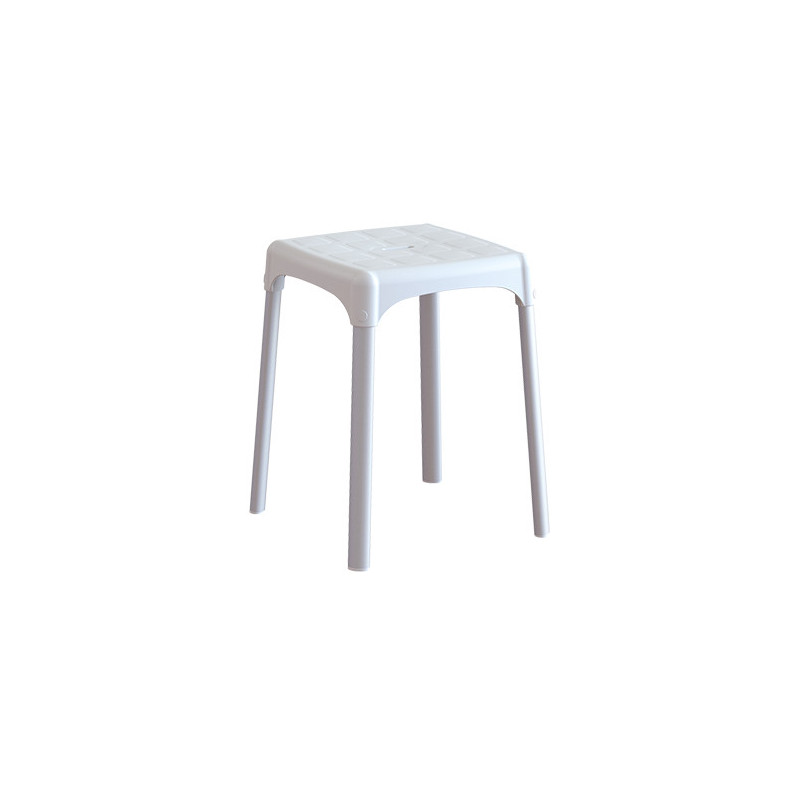 Sgabello da bagno fisso con altezza di 42 cm, realizzato in polipropilene antiscivolo e alluminio anodizzato. Progettato per offrire comfort e sicurezza durante l'uso della doccia. La struttura robusta e la seduta forata garantiscono stabilità e drenaggio efficace.