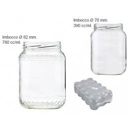 Ideali per il tuo miele, questi vasi in vetro da 390 cc con imboccatura Ø70 mm sono perfetti per confezionare miele e conserve dolci.