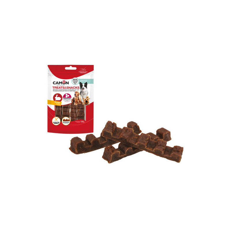 Le Barrette Camon al coniglio sono snack porzionabili monoproteici, senza additivi e gluten free.