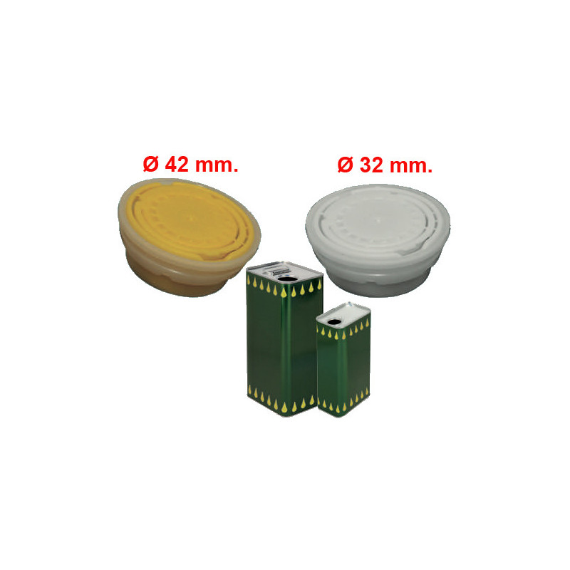 Tappi in plastica con diametro di 42 mm, ideali per la chiusura ermetica di lattine in ambito professionale.