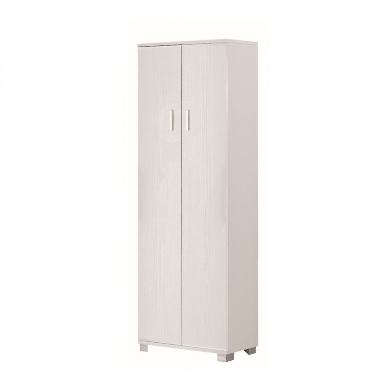 Tipologia: armadio 2 ante in kit Colore: bianco liscio Dimensioni: 77×52×182 cm Materiale: pannello truciolare nobilitato Spessore: 16 mm ante Interno: barra portabiti, 1 ripiano fisso, 1 regolabile Maniglie: cromo satinato Montaggio: da assemblare