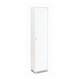 Tipologia: armadio 2 ante in kit Colore: bianco fiammato Dimensioni: 62×34×178 cm Materiale: pannello truciolare nobilitato Spessore: 16 mm ante Interno: 3 ripiani regolabili, 1 fisso Maniglie e Piedini: cromo satinato Montaggio: da assemblare