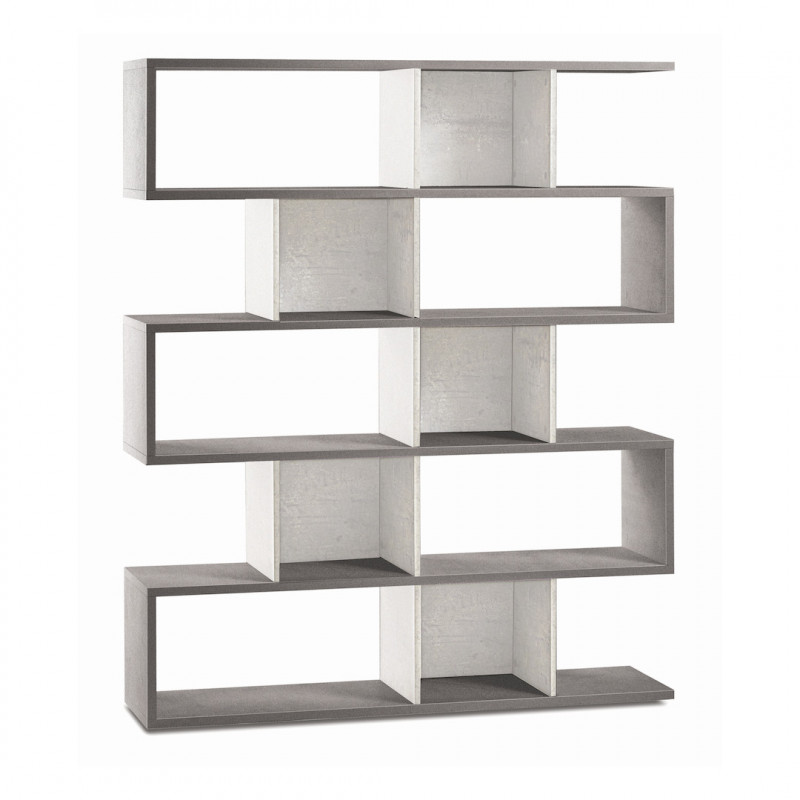 Libreria componibile con struttura in colore cemento e Frontali in bianco opaco. Pannelli spessi 25 mm e 18 mm con bordi in ABS. In kit da montare, adatta per arredare con stile spazi domestici o professionali. Ampia capacità di archiviazione.