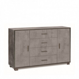 Mobile 2 Ante 4 Cassetti 136L x 41P x h86 – Finitura Nero Opaco e Cemento – Sarmog