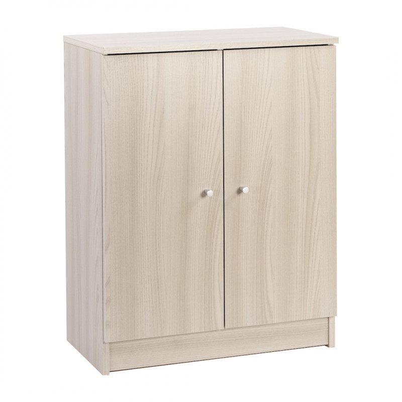 Mobile 2 ante in kit con struttura e ante in olmo chiaro, spessore 16mm. Dotato di 1 ripiano regolabile interno. Pomoli in cromo satinato. Adatto a soggiorno, ufficio o cameretta. Bordi in ABS. Da montare.
