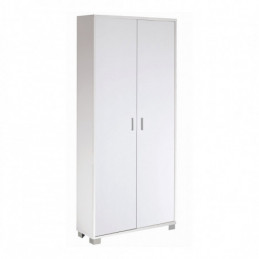 Mobile a due ante alto e capiente, con struttura e ante in finitura bianco fiammato. Dotato di 8 ripiani regolabili, bordi arrotondati in ABS, Maniglie e piedini in finitura cromo satinato. Ideale per archiviazione in casa o ufficio.