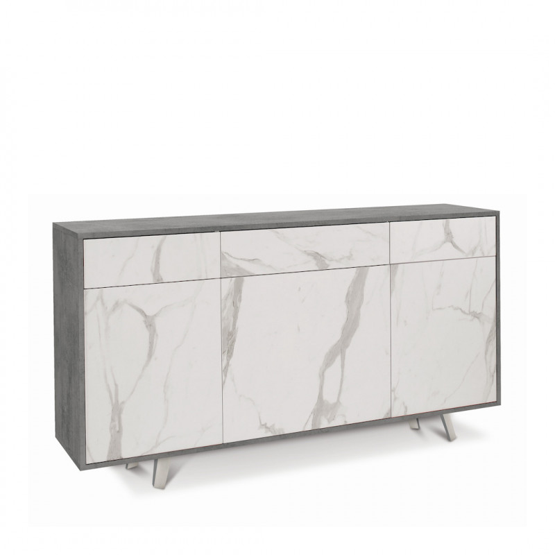 Mobile 3 Ante 3 Cassetti 164L x 41P x h92 – Finitura Cemento e Marmo Calacatta – Sarmog