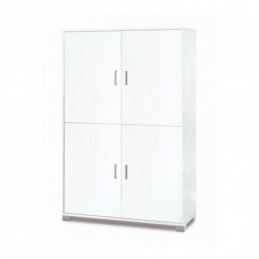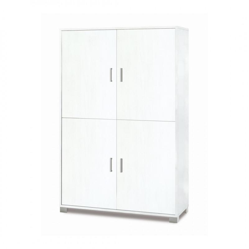 Mobile a 4 ante con Struttura e Frontali in bianco fiammato, ideale per soggiorno o ufficio. Offre ampio spazio contenitivo con 4 ripiani interni regolabili. Dotato di Maniglie e piedini in finitura cromo satinato. Il mobile è in kit di montaggio con bordi ABS per una maggiore durata.