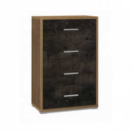 Mobile con quattro cassetti, struttura in colore legno noce e Frontali in nero opaco. Design sofisticato, guide a rullo e Maniglie cromate satinato. Mobile in kit, facile da montare.
