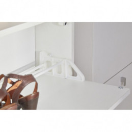 Tipologia: armadio 2 ante in kit Colore: bianco fiammato Dimensioni: 62×34×178 cm Materiale: pannello truciolare nobilitato Spessore: 16 mm ante Interno: 3 ripiani regolabili, 1 fisso Maniglie e Piedini: cromo satinato Montaggio: da assemblare
