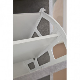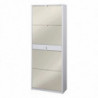 Scarpiera in kit con struttura in bianco fiammato e ante con specchio. Dotata di 4 ante a ribalta doppia profondità e 1 cassetto con guide a sfera. Capacità fino a 20 paia di scarpe. Pomoli in cromo platinato, bordi ABS senza angolo vivo. Mobile da montare.