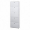Scarpiera in kit con struttura e ante in Bianco Fiammato. Dotata di 5 ante a ribalta singola con profondità ridotta, capacità fino a 12 paia di scarpe. Pomoli verniciati cromo satinato. Soluzione ideale per ingressi spaziosi.