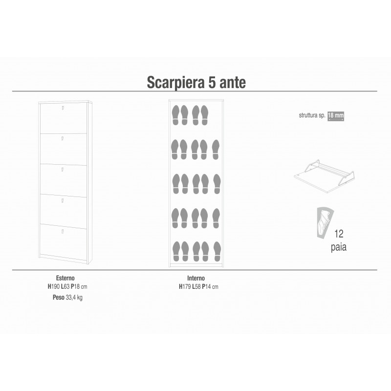 Tipologia: scarpiera 5 ante a ribalta in kit