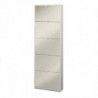 Scarpiera in kit con struttura bianco opaco e ante con specchio. Dotata di 5 ante a ribalta singola, capacità fino a 12 paia di scarpe. Maniglie in alluminio satinato. Design elegante, ideale per ingressi moderni e raffinati.
