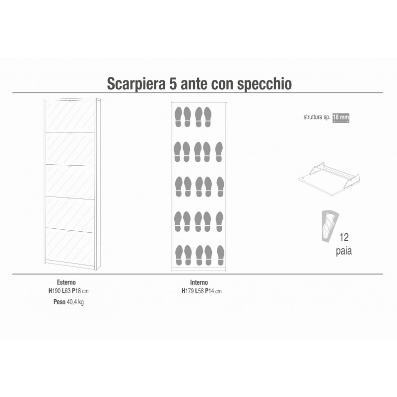 Tipologia: scarpiera 5 ante a ribalta con specchio in kit