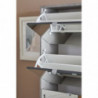 Struttura sp. 18mm ed ante sp. 16mm, fianchi e top a vista, bordo ABS senza angolo vivo Contiene 8 ripiani regolabili Maniglie e piedini verniciati cromo satinato (in finitura struttura con Ghisa o Titanio) Mobile in kit già montato Struttura Color Olmo Chiaro e Frontale In Bianco Fiammato