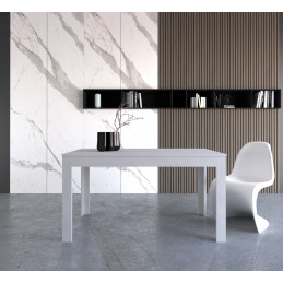 Tavolo allungabile con struttura e piano in bianco opaco, spessore 18mm. Dotato di allunga estraibile da base sottostante su supporto girevole, ottimo per ottimizzare gli spazi, espandibile fino a 200 cm per adattarsi a momenti conviviali con più persone. Mobile in kit di montaggio, ideale per ambienti moderni. Da montare.