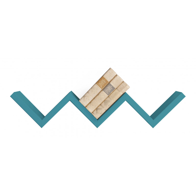 La mensola da parete Saetta Blu Atollo di Sanitec è una soluzione decorativa dal profilo a zig-zag, ideale per cameretta, studio e living, Made in Italy.